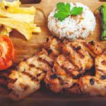 38złszaszłyk z kurczaka, frytki / ziemniaki / ryż / makaron, surówka, sos